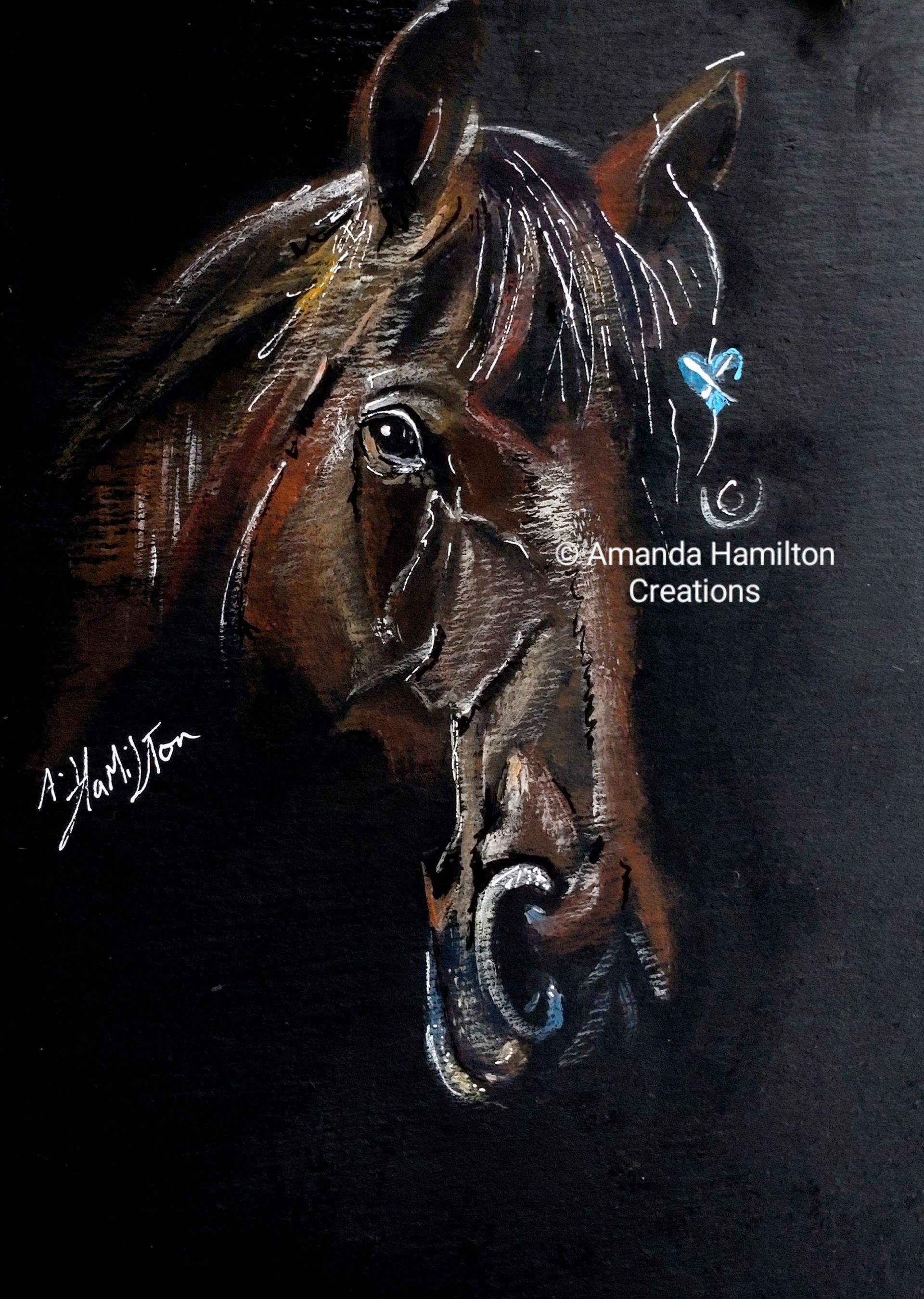 I accept commissions of pet/horse portraits and work from your photographs; painting a realistic portrait in acrylics on canvas or slate, giving you a lasting keepsake.